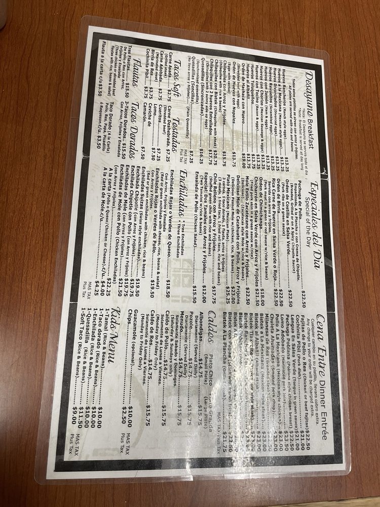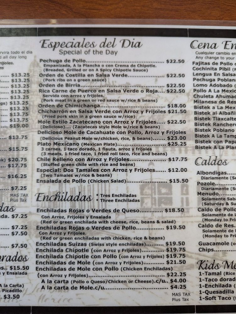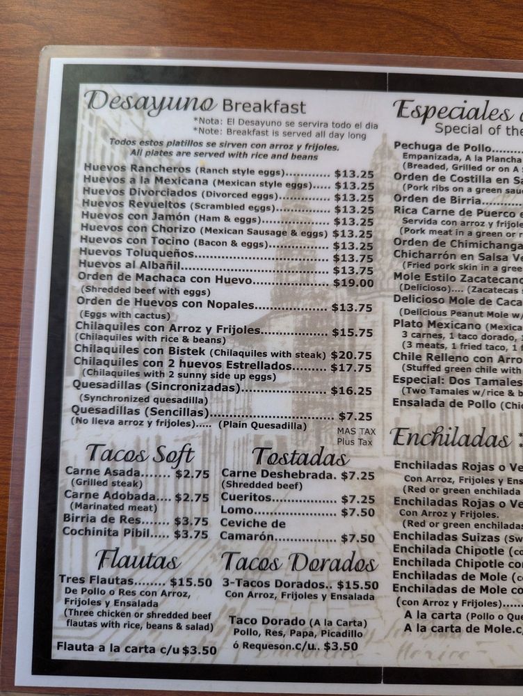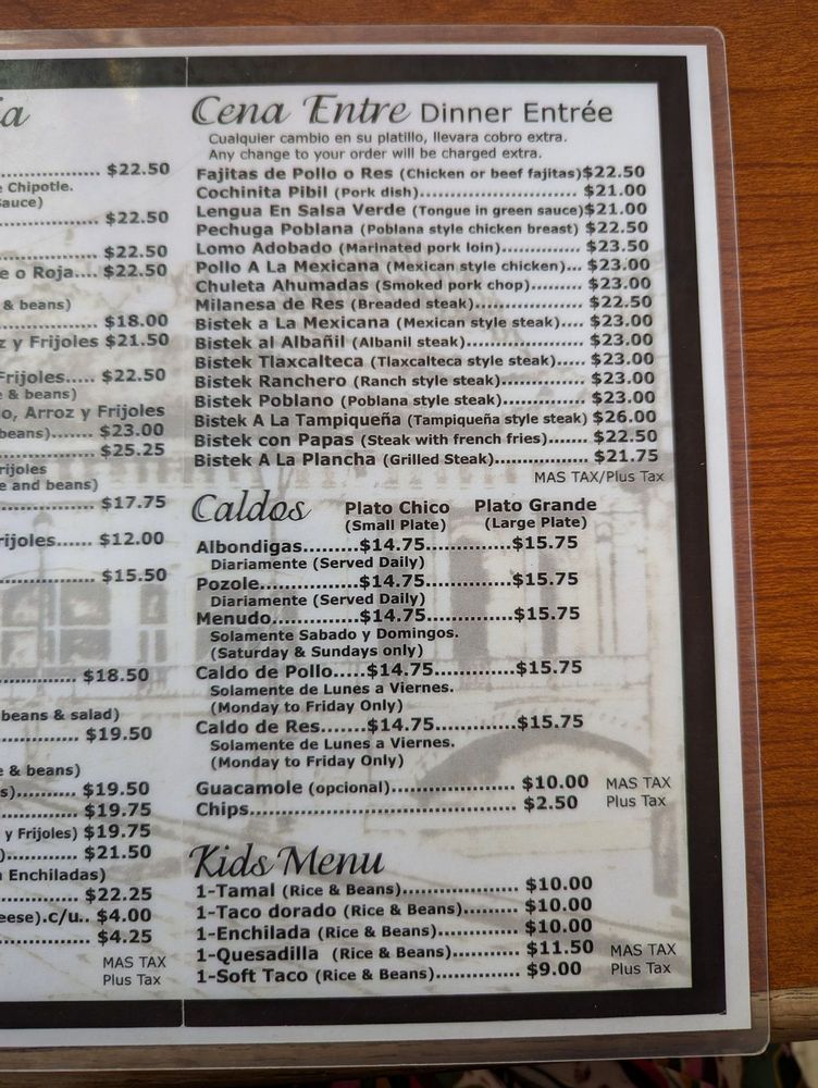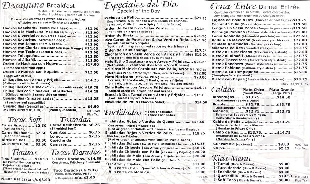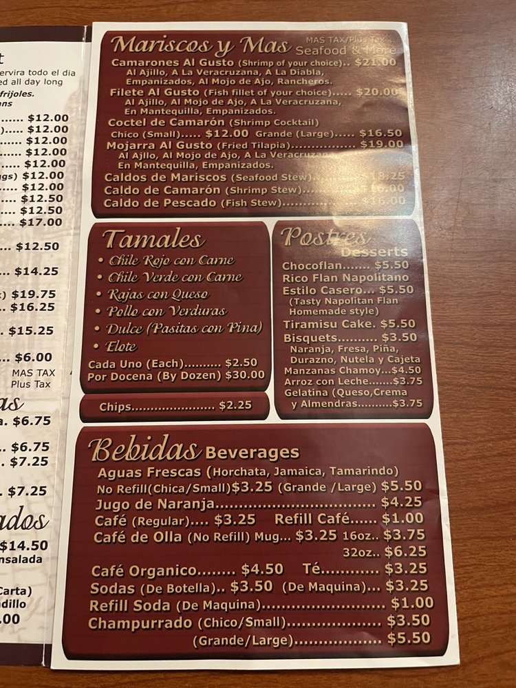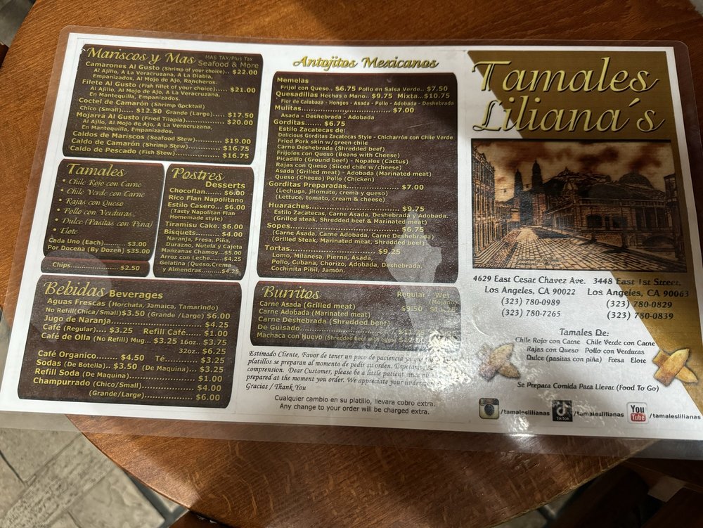 Tamales Lilianas Menu